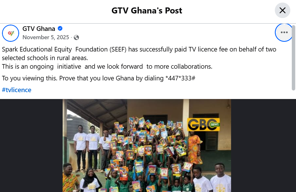 To honor deprived schools and underserved students, SEEF proudly paid the Ghana Broadcasting Corporation (GBC) TV license fee on behalf of two selected schools in rural areas. This initiative ensures that students in underserved communities can benefit from educational programming, broadening their horizons and connecting them to the wider world.